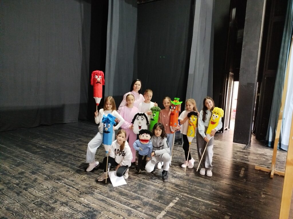 Пред пуном салом Вуковог дома културе, 22. априла 2026. године, на Фестивалу глумачких остварења „Драган Тошић“, ученици наше школе наступили су са луткарском представом „Помоћ шарених приатеља“. Честитке свим